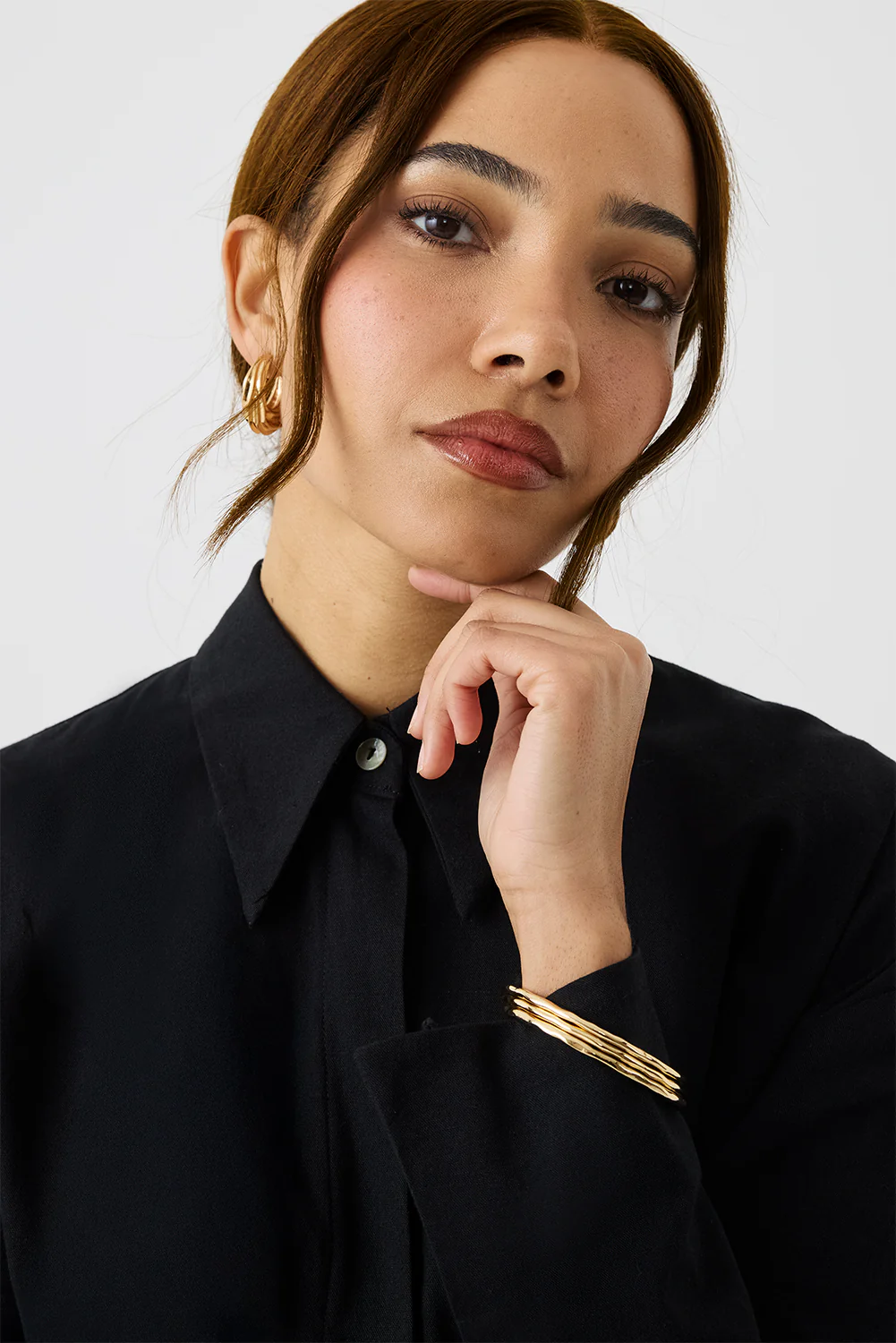 Crafted from breathable natural fabric for an effortlessly relaxed feel. Designed with funnel cuffs and a chic sharp point collar, for a modern take on a classic silhouette. A curved dipped hem adds coverage, movement and versatility.