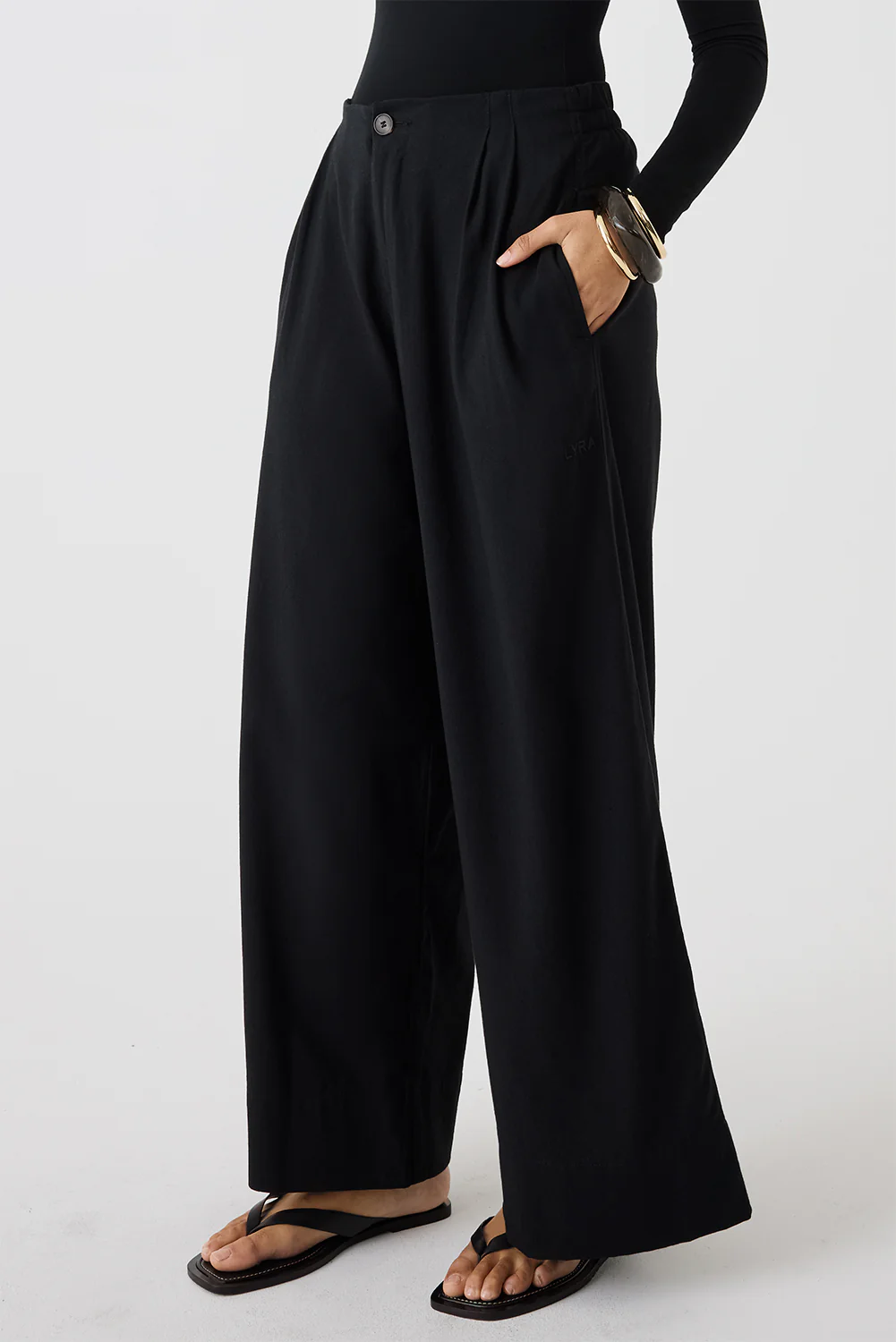 Wide-leg trousers designed for a relaxed yet refined look. The high waistline creates a flattering silhouette, while front pleats add comfort and ease of movement. Finished with a button fastening and practical side pockets for everyday functionality. Please note the white colour is lined, for full coverage.